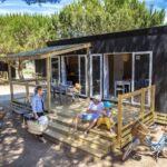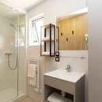Mobil-Home Premium 34m² (3 chambres – 6 pers.) + terrasse couverte + TV + draps et serviettes inclus;